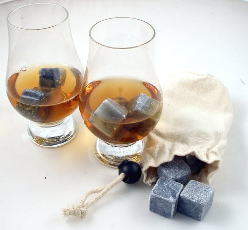 , This is a wonderful gift for the whiskey or scotch lovers. You get 4 of the award winning Glencairn Nosing Glasses (the official whiskey glasses) in a gift box and a set of 9 whiskey stones. The whiskey stones or "Ice Rocks" are ideal for chilling your favorite spirit without diluting its flavor. Add three chilled stones to your next dram, let stand for 5 minutes and enjoy. Set of 9 stones + muslin storage bag.